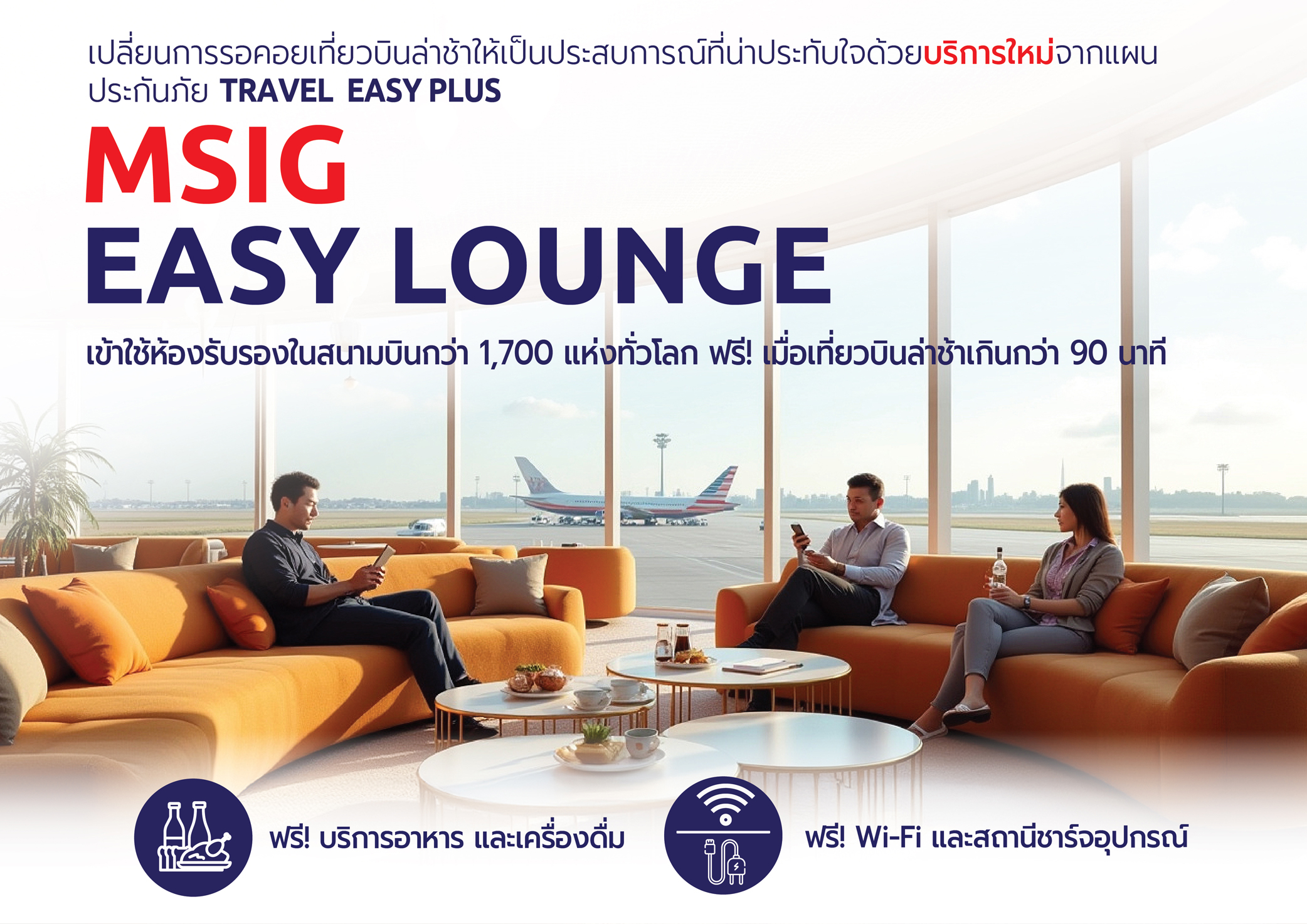 ระหว่างรอ ด้วย MSIG Easy Lounge บริการห้องรับรองสนามบินทั่วโลกโดยไม่มีค่าใช้จ่าย "